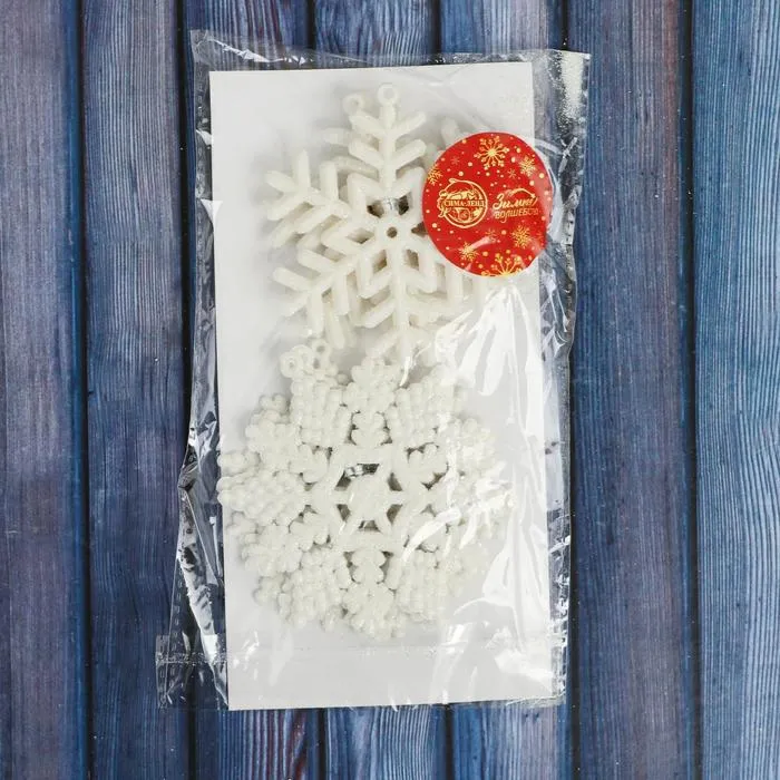 Ёлочные игрушки 6 шт. «Зимнее волшебство. Белая снежинка» пластик, d-8 см и 9 см — Характеристики