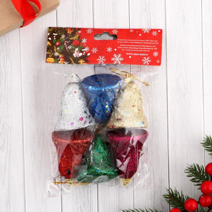 Ёлочные игрушки 6 шт. «Зимнее волшебство. Колокольчик в блёстках» пластик, 4,5х5,5 см, МИКС — Характеристики