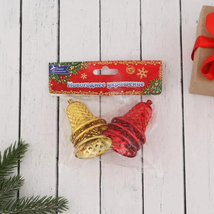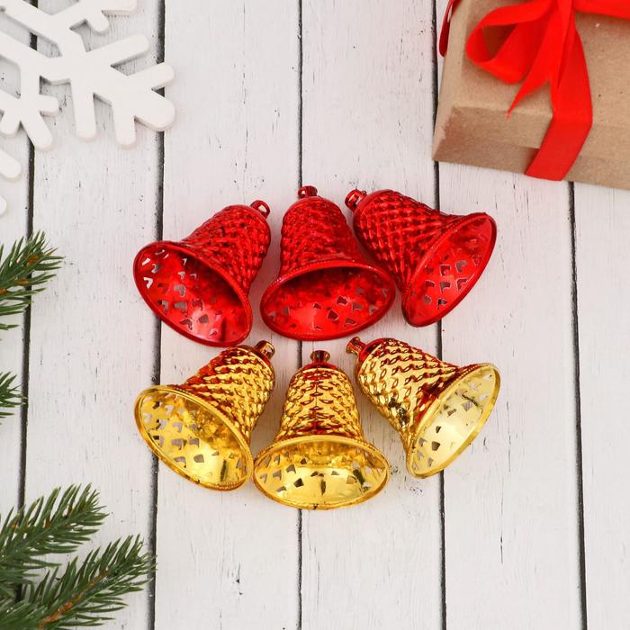 Ёлочные игрушки 6 шт. «Зимнее волшебство. Колокольчики ребристые» пластик, 4.5×4 см, красный золото — Характеристики