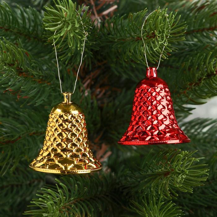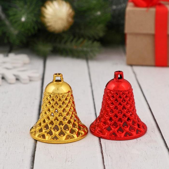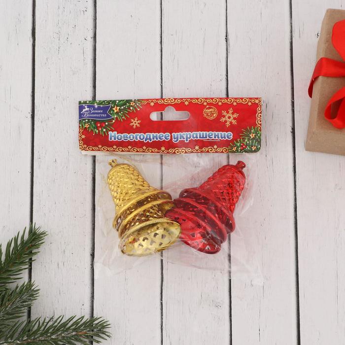 Ёлочные игрушки 6 шт. «Зимнее волшебство. Колокольчики ребристые» пластик, 4.5×4 см, красный золото