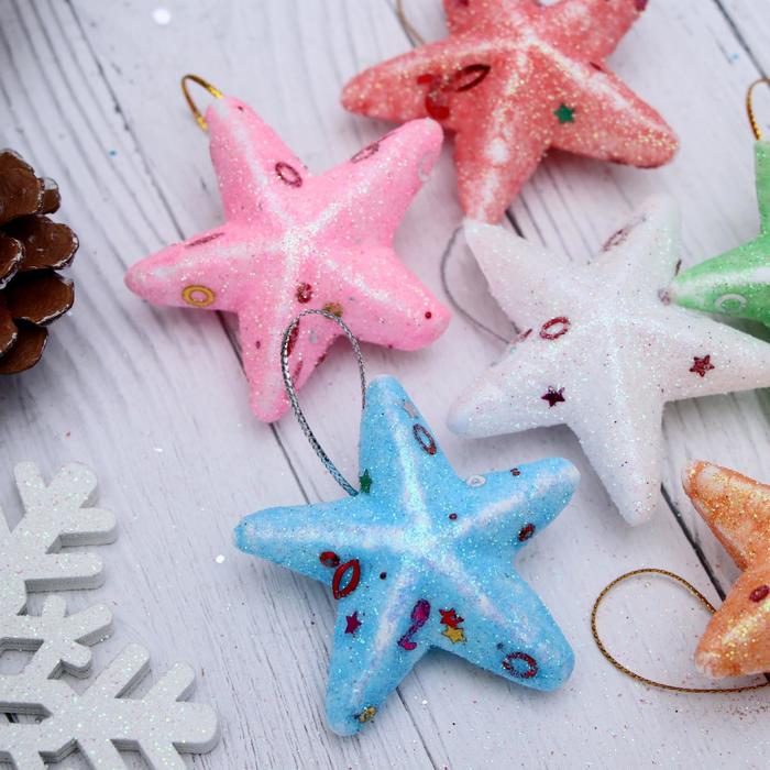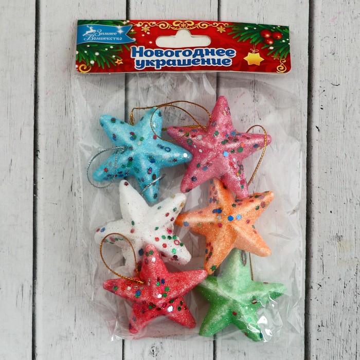 Ёлочные игрушки 6 шт. «Зимнее волшебство. Радужные звёзды - магия» пластик, 5 см, МИКС — Характеристики