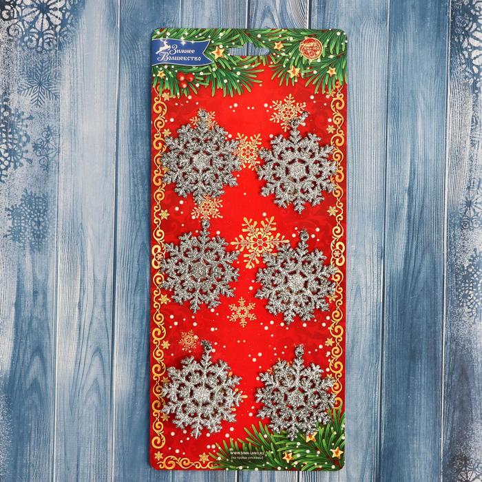 Ёлочные игрушки 6 шт. «Зимнее волшебство. Снежинка круглая» пластик, d-5,5 см, серебро