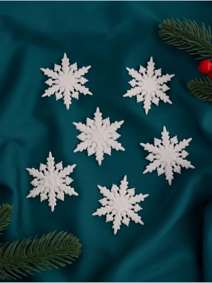 Праздник в каждой детали: Эти игрушки становятся частью семейных традиций. Их можно использовать как основу для декора или дополнять другими украшениями. Белый цвет не теряет актуальности годами, а резные узоры добавляют уникальность, как настоящие снежинки. Набор идеален для тех, кто хочет создать запоминающийся ансамбль без лишней вычурности.