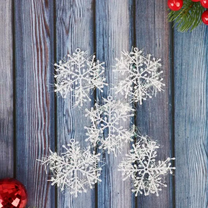 Ёлочные игрушки 6 шт. «Зимнее волшебство. Снежинка - пушинка» пластик, d-6 см, белый — Характеристики