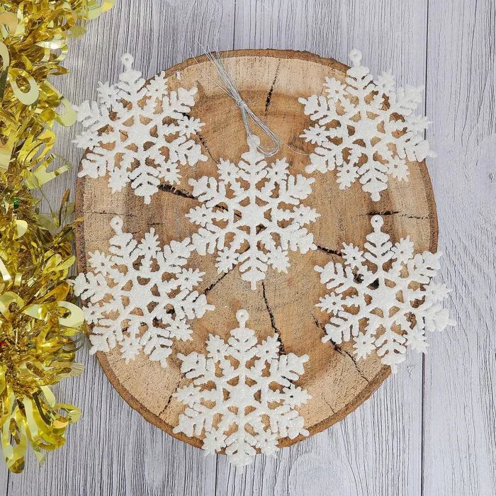 Ёлочные игрушки 6 шт. «Зимнее волшебство. Снежинка узорная» пластик, d=7 см, белый — Характеристики
