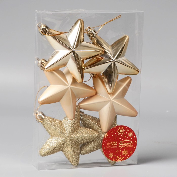 Ёлочные игрушки 6 шт. «Зимнее волшебство. Звездопад» пластик, 8 см, золото — Характеристики