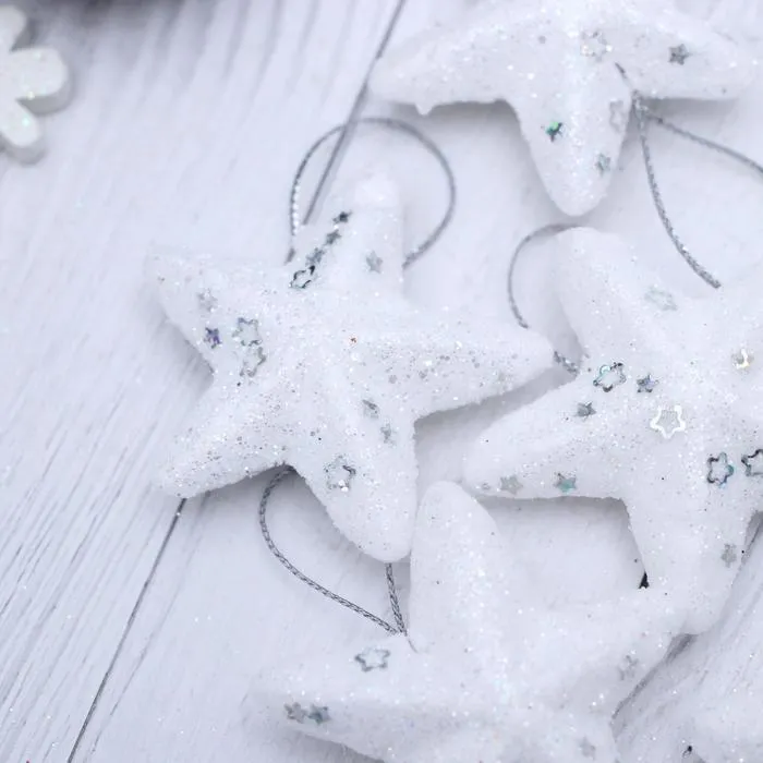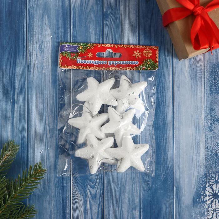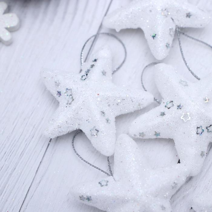 Ёлочные игрушки 6 шт. «Зимнее волшебство. Звёздочка - морозный блеск» пластик, 4.5 см, белый — Характеристики