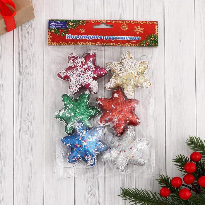 Ёлочные игрушки 6 шт. «Зимнее волшебство. Звёзды с блёстками» пластик, 7 см, МИКС — Характеристики