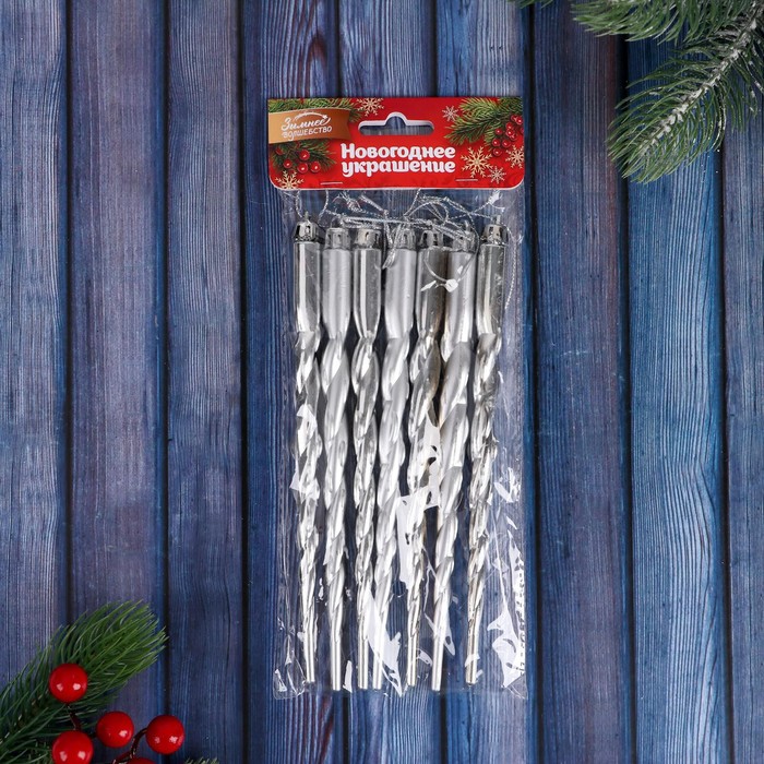 Ёлочные игрушки 7 шт. «Сосулька - завитулька», 19 см, серебристый — Характеристики