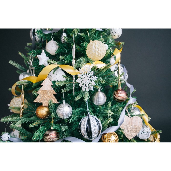 - Серебристый оттенок: Цвет, который имитирует иней, создавая эффект мерцающего света при контакте с гирляндами. Подходит для контрастных композиций или монохромного ансамбля с белым и синим.
