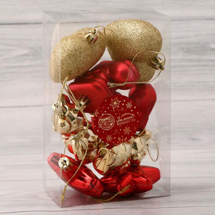 Ёлочные игрушки 8 шт. «Зимнее волшебство. Ассорти» пластик, золото/красный — Характеристики