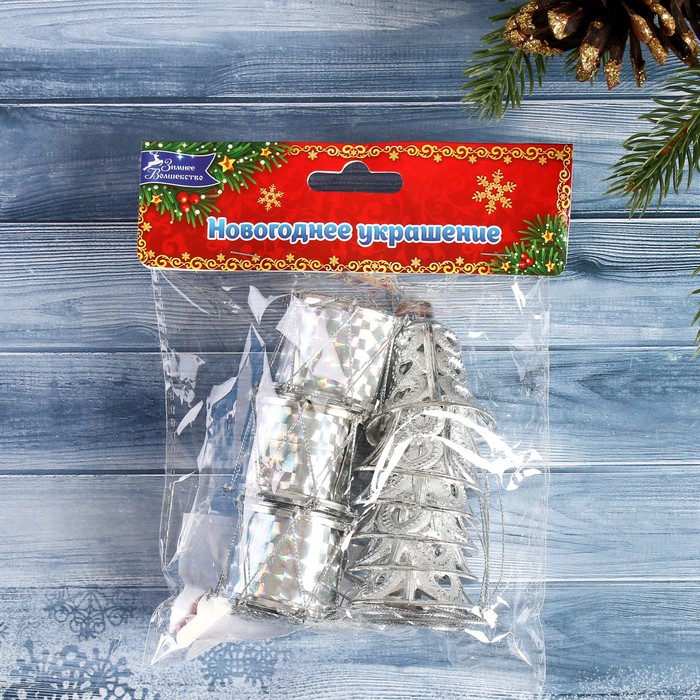 Ёлочные игрушки 9 шт. «Зимнее волшебство. Кружева» пластик, серебро — Характеристики