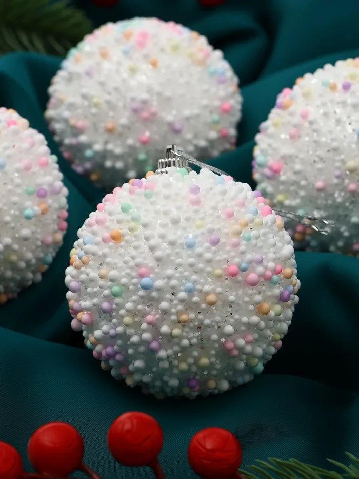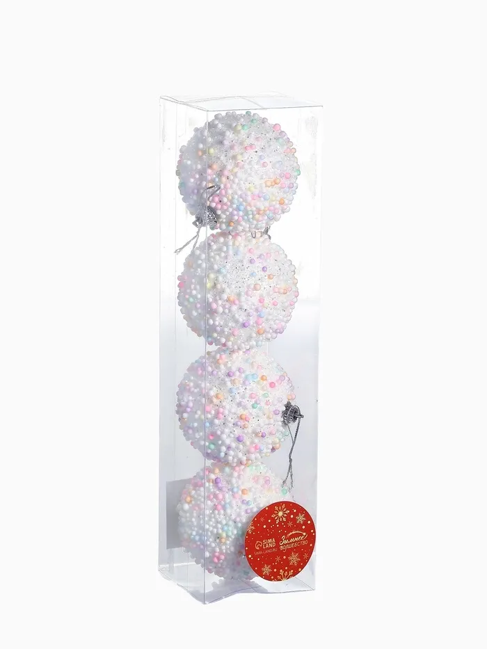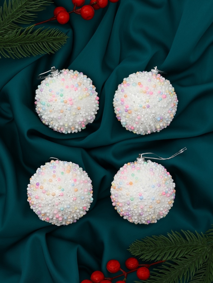 Набор из четырёх белых ёлочных шаров диаметром 7 см станет универсальным дополнением к новогоднему оформлению. Пластиковые шары без рисунка подчёркивают сдержанную элегантность и легко сочетаются с другими украшениями, создавая гармоничную атмосферу праздника.