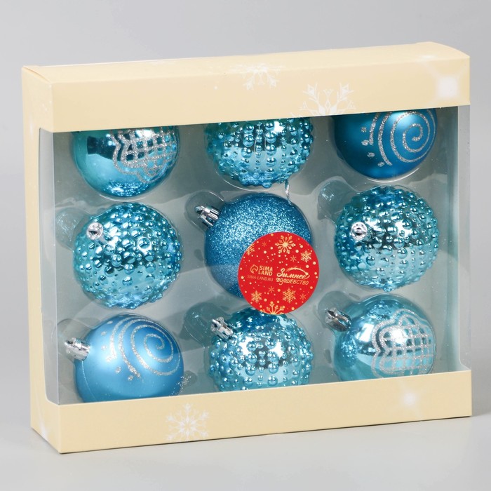 Ёлочные игрушки «Адель», шары новогодние, d=6 см, набор 9 шт., завитки, голубой — Характеристики