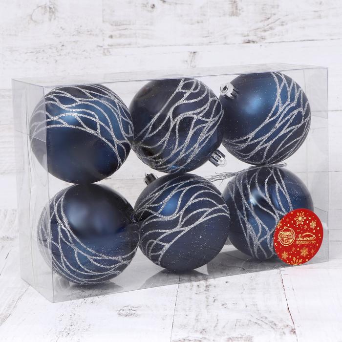 Ёлочные игрушки «Адель волны», шары новогодние, d=8 см, набор 6 шт., серебристо-синий — Характеристики