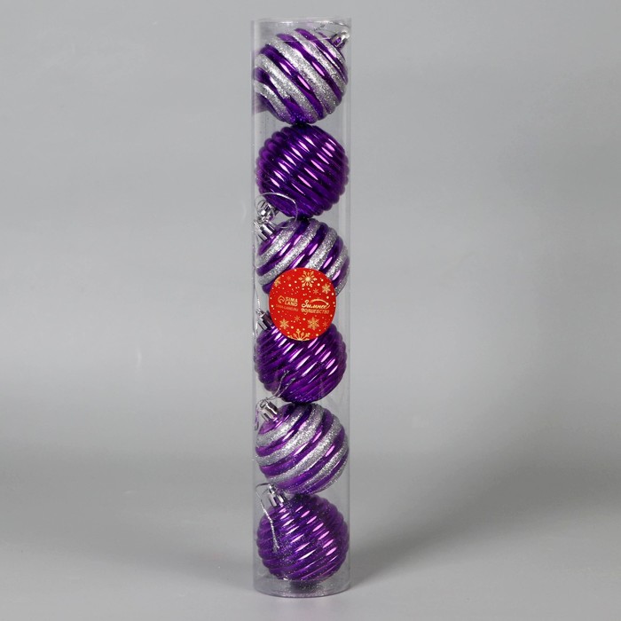 Ёлочные игрушки «Агнет», полосы, набор 6 шт., d=6 см, серебристо - фиолетовый — Характеристики