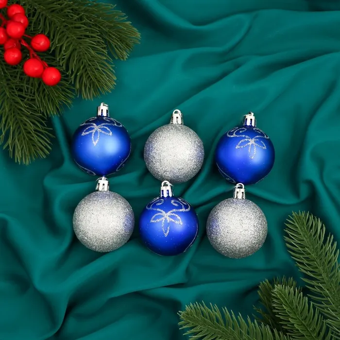 Ёлочные игрушки «Агнет» шары новогодние, d=5 см, набор 12 шт., цветы, серебристо-синий — Характеристики