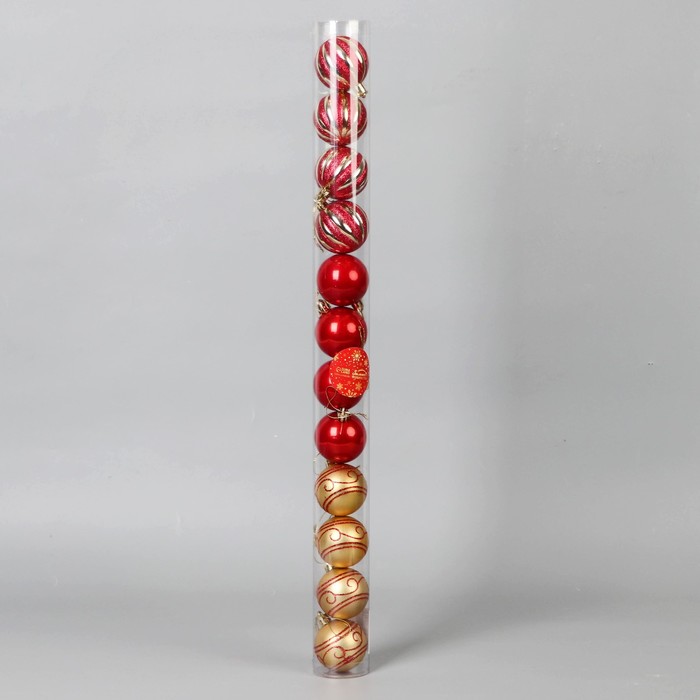 Ёлочные игрушки «Агнет», шары новогодние, d=5 см, набор 12 шт., узоры, полосы, золотисто-красный — Характеристики