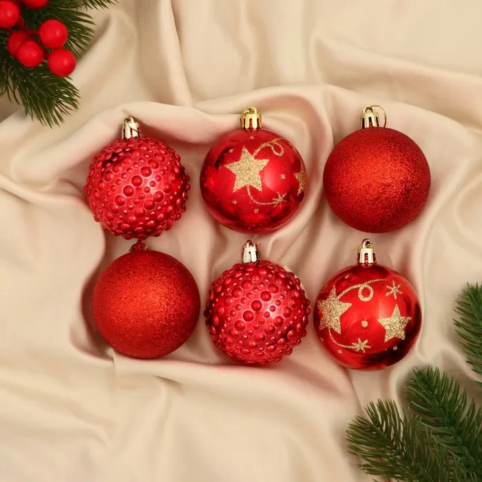 Новогодние шары с звёздным рисунком — это универсальный и стильный элемент декора для праздничной ёлки. Шесть пластиковых игрушек диаметром 6 см подойдут для создания атмосферы Нового года в стиле новогоднего барокко, скандинавского минимализма, фьюжн или советской классики. Красный цвет и звёздный узор добавляют образу торжественности и ностальгии без излишней вычурности.