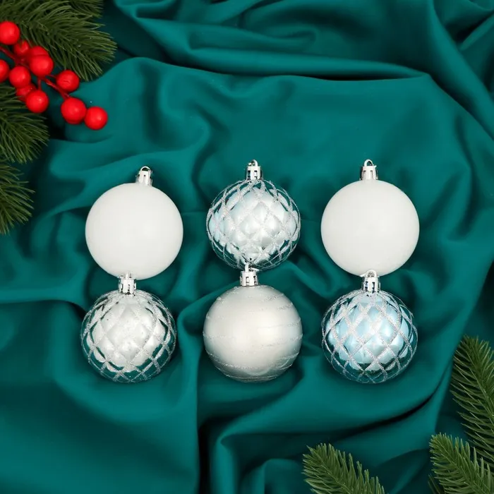 Ёлочные игрушки «Агнет», шары новогодние, набор 12 шт., d=6 см, белый/серебристый — Характеристики