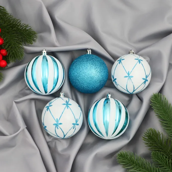 Ёлочные игрушки «Агнет» узоры, шары новогодние, набор d=8 см, 5 шт., МИКС — Характеристики
