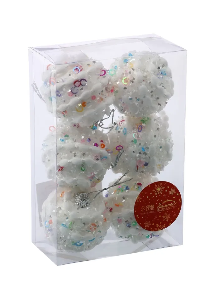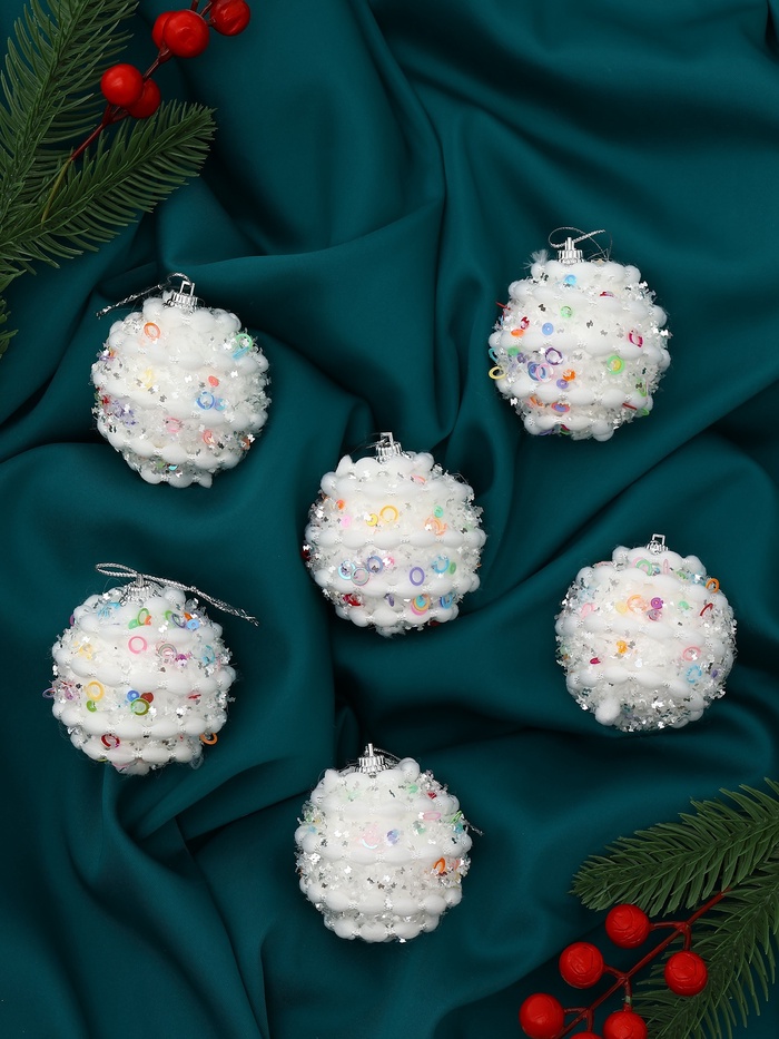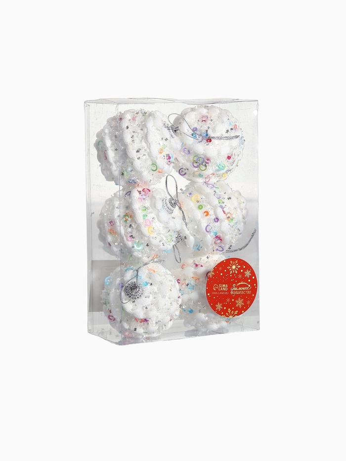 Ёлочные игрушки «Акли», шары новогодние, d=6 см, 6 шт., белый — Характеристики