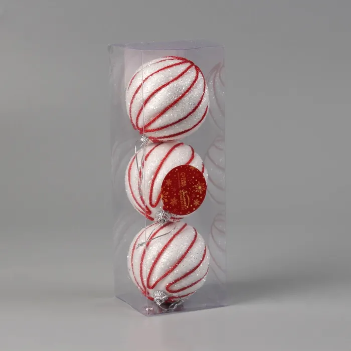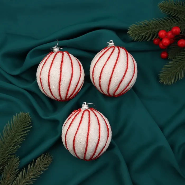 Ёлочные игрушки «Аксель», шары новогодние, d=8 см, набор 3 шт., бело-красный — Характеристики