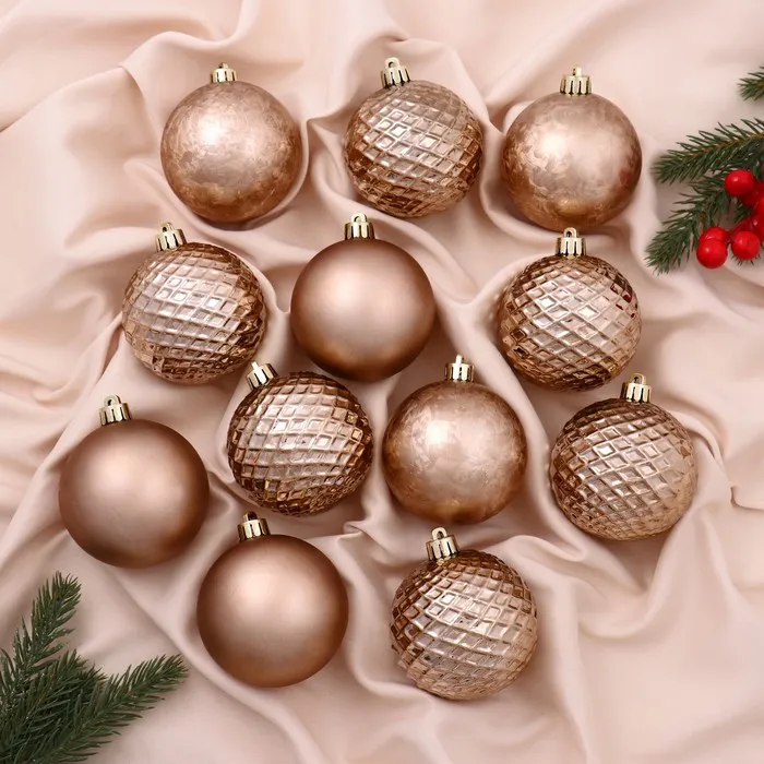Ёлочные игрушки «Алета сеточка», шары новогодние, d=7 см, набор 12 шт., коричневый — Характеристики