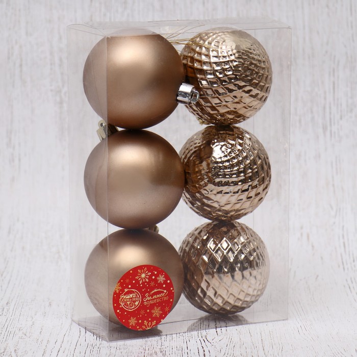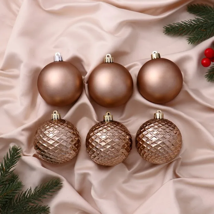 Ёлочные игрушки «Алета сеточка», шары новогодние, d=7 см, набор 6 шт., коричневый — Характеристики