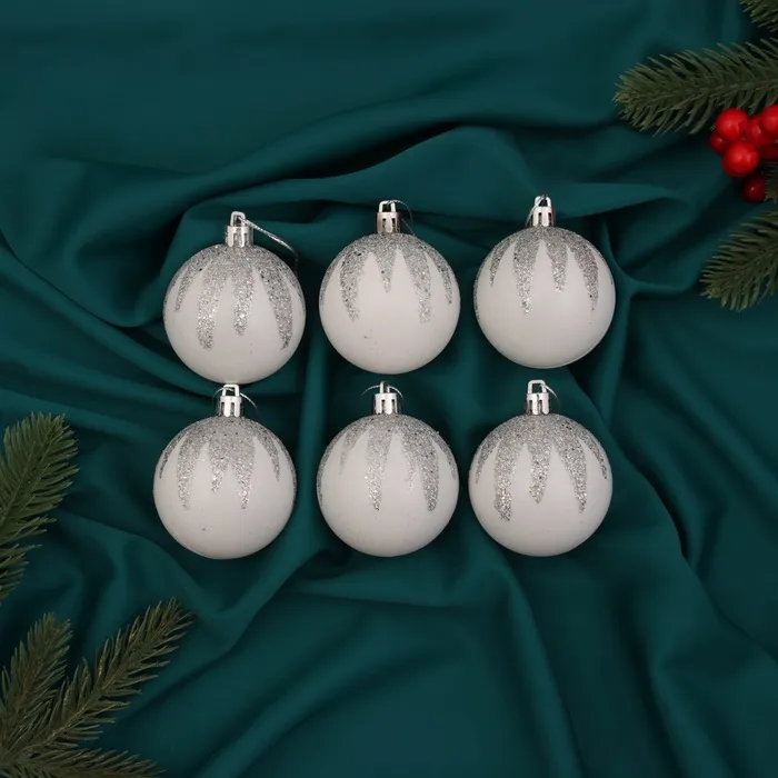 Ёлочные игрушки «Алойз», шары новогодние, d=6 см, набор 6 шт., серебристо-белый — Характеристики