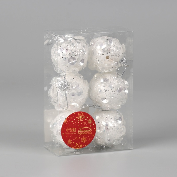 Ёлочные игрушки «Альваро», шары новогодние, d=5 см, набор 6 шт., пайетки, белый — Характеристики