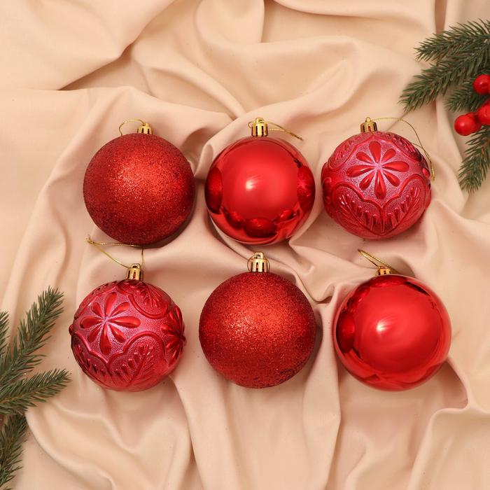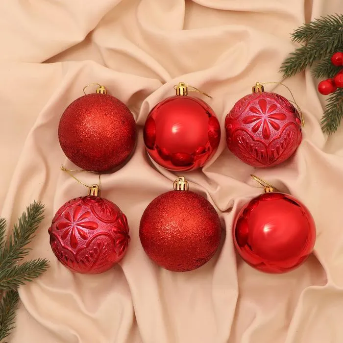 Новогодние шары насыщенного красного цвета — это универсальный и стильный элемент для украшения ёлки к празднику. Шесть пластиковых игрушек диаметром 8 см подойдут для создания новогоднего декора в стиле барокко, скандинавского минимализма или фьюжн. Однотонный дизайн делает их идеальной базой для любого праздничного оформления.