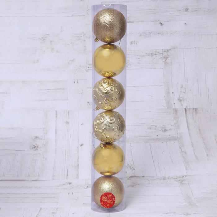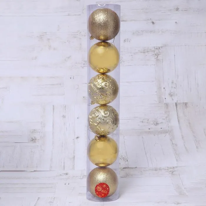 Ёлочные игрушки «Амаль», шары новогодние, пластик, набор d=10 см, 6 шт., золотистый — Характеристики