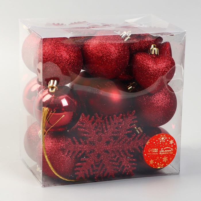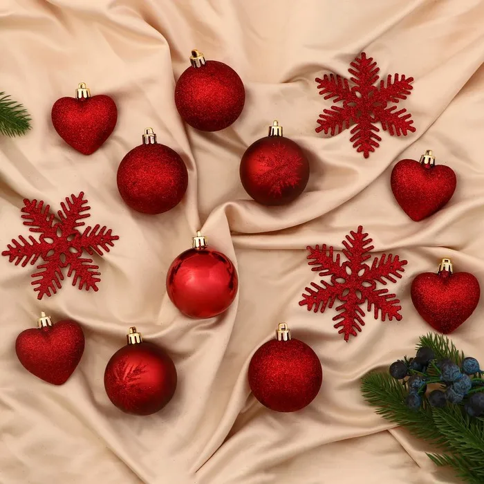 Ёлочные игрушки «Амур», шары новогодние, набор 22 шт. (16 шаров, 6 сердец, 8 снежинок), красный — Характеристики