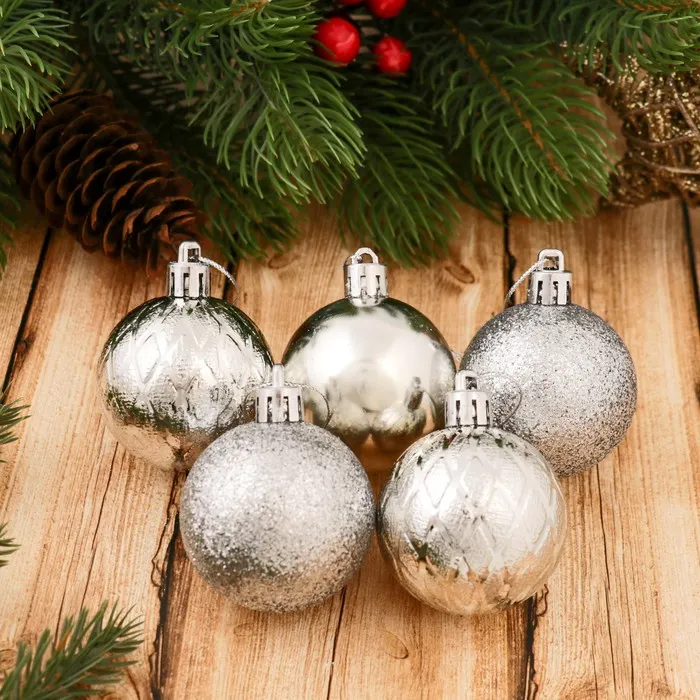Ёлочные игрушки «Анданте», шары новогодние, набор 12 шт., d=5 см, серебристый — Характеристики