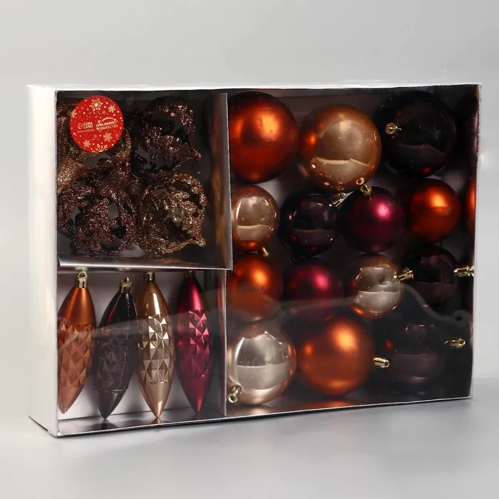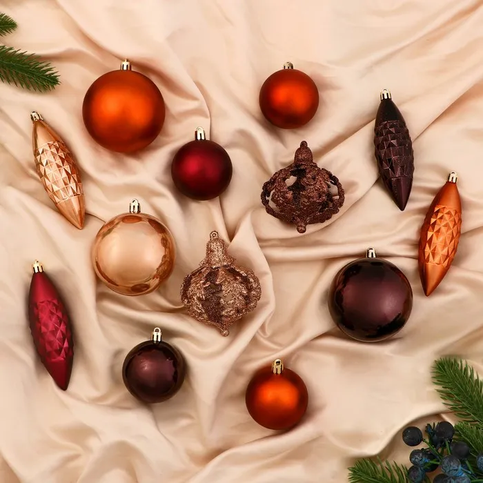 Ёлочные игрушки «Андромеда», новогодние, набор 22 шт. (4 сосульки, 18 шаров), кофейный МИКС — Характеристики