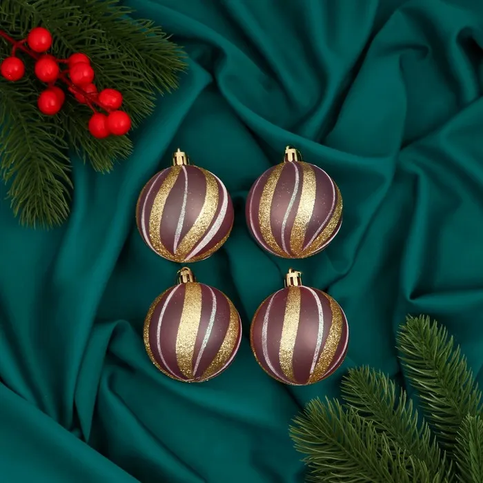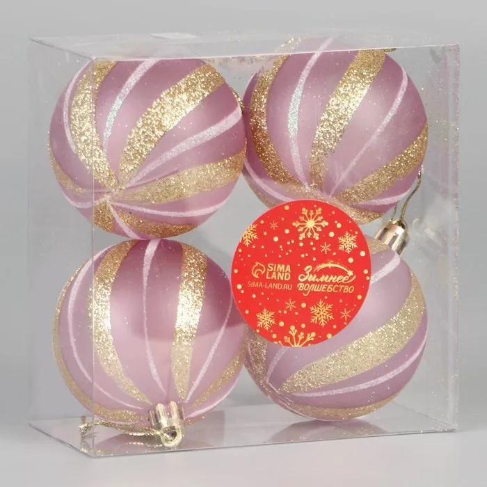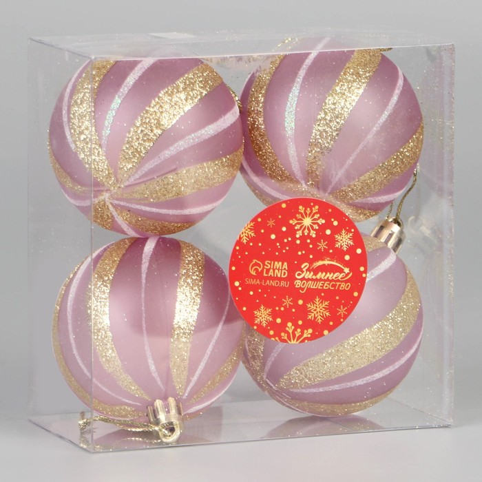 Ёлочные игрушки «Ариан», шары новогодние, набор d=6 см, 4 шт., золотисто-розовый — Характеристики