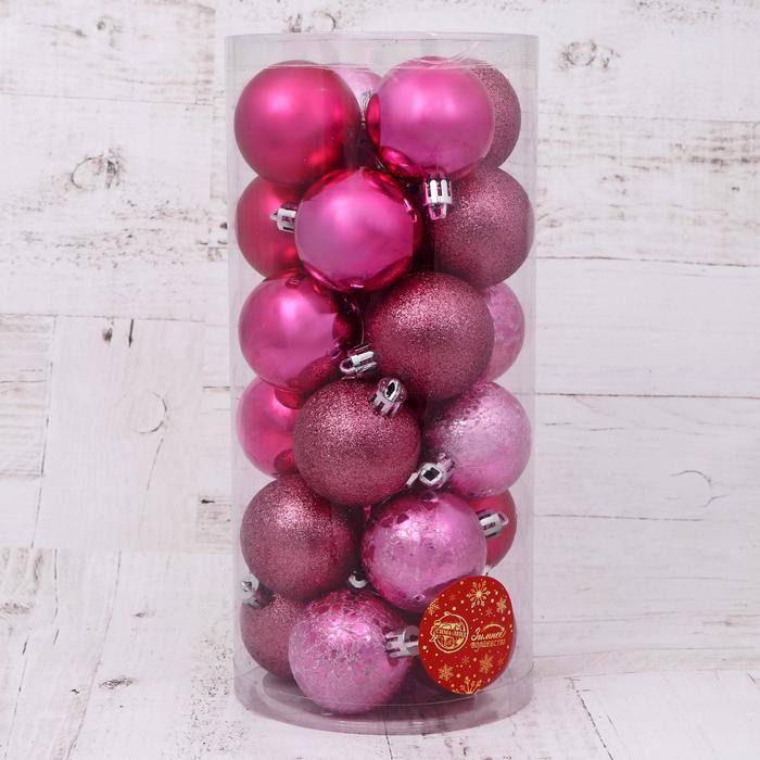 Ёлочные игрушки «Ассорти», шары новогодние, d=5 см, набор 24 шт., розовый — Характеристики