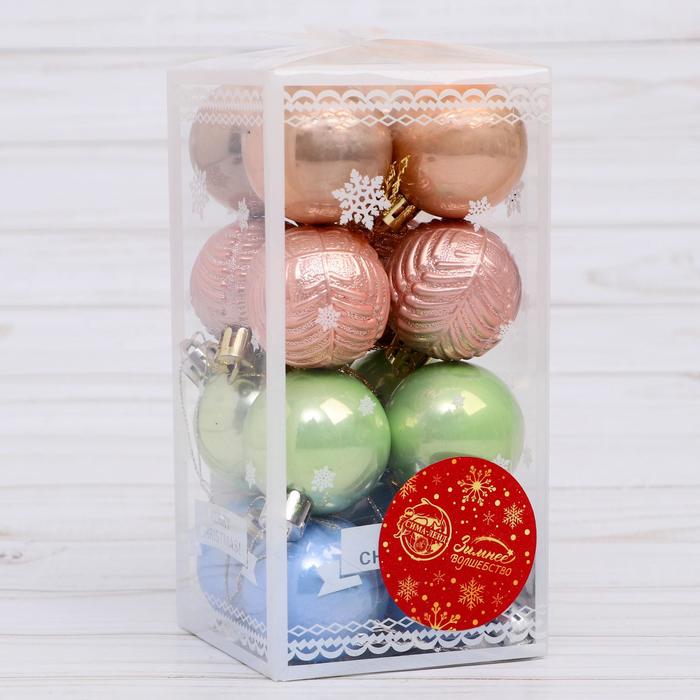 Ёлочные игрушки «Астрид листочки», шары новогодние, d=4 см, набор 16 шт., МИКС — Характеристики