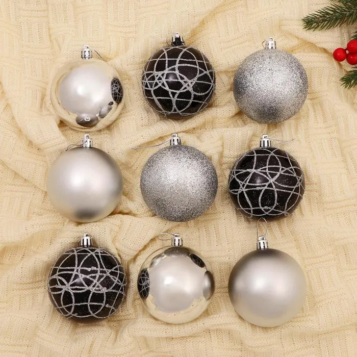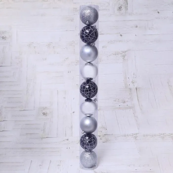 Ёлочные игрушки «Авива», шары новогодние, d=8 см, набор 9 шт., серебро — Характеристики