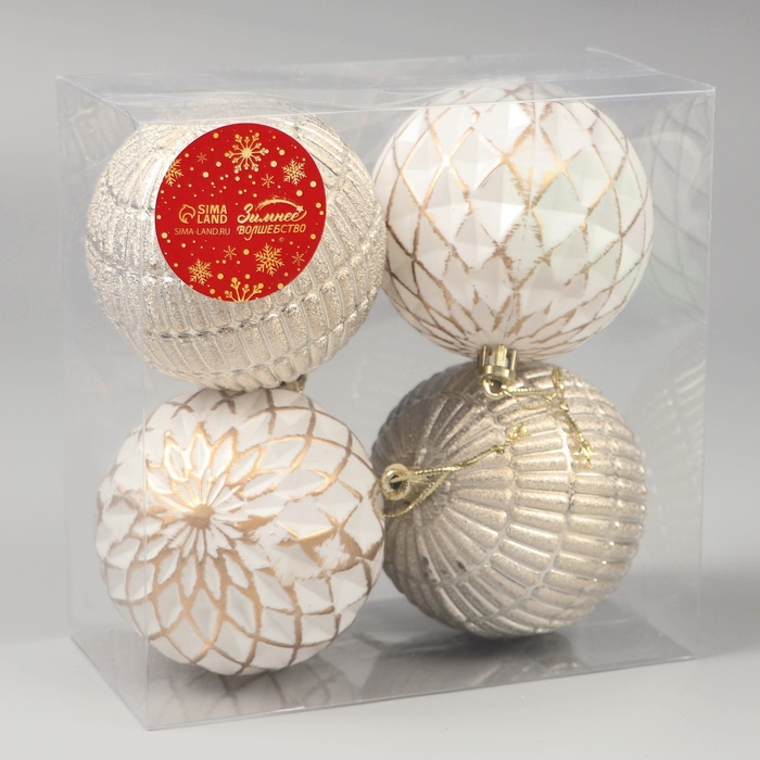 Ёлочные игрушки «Авива», шары новогодние, набор 4 шт., d=8 см, сетка, золотистый — Характеристики