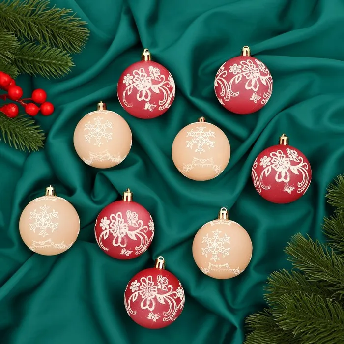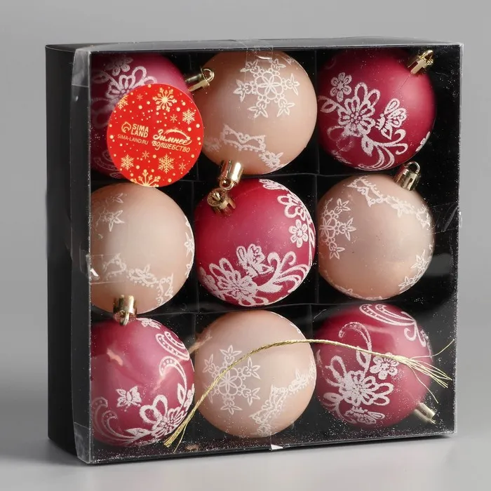 Ёлочные игрушки «Ажур», шары новогодние, d=5.5 см, набор 9 шт., красный/бежевый — Характеристики