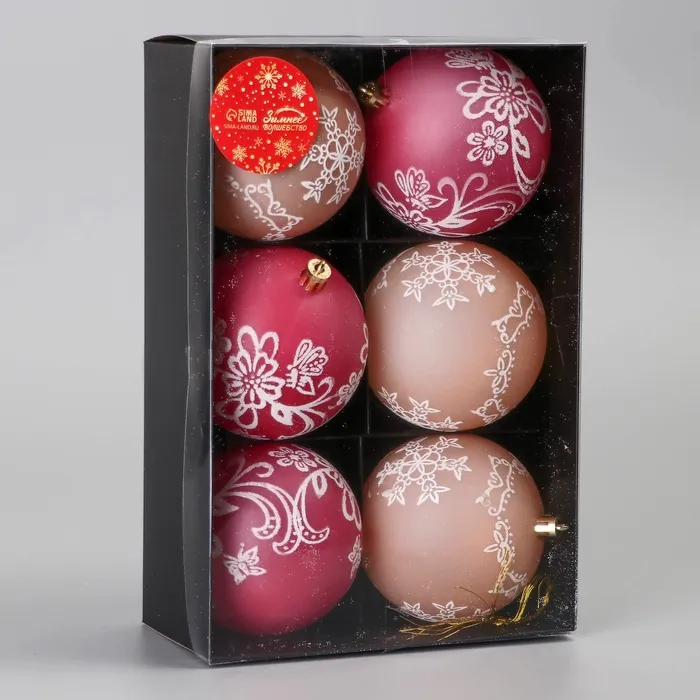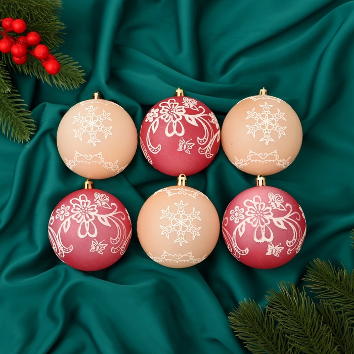 Ёлочные игрушки «Ажур», шары новогодние, d=7.5 см, набор 6 шт., красный/бежевый — Характеристики