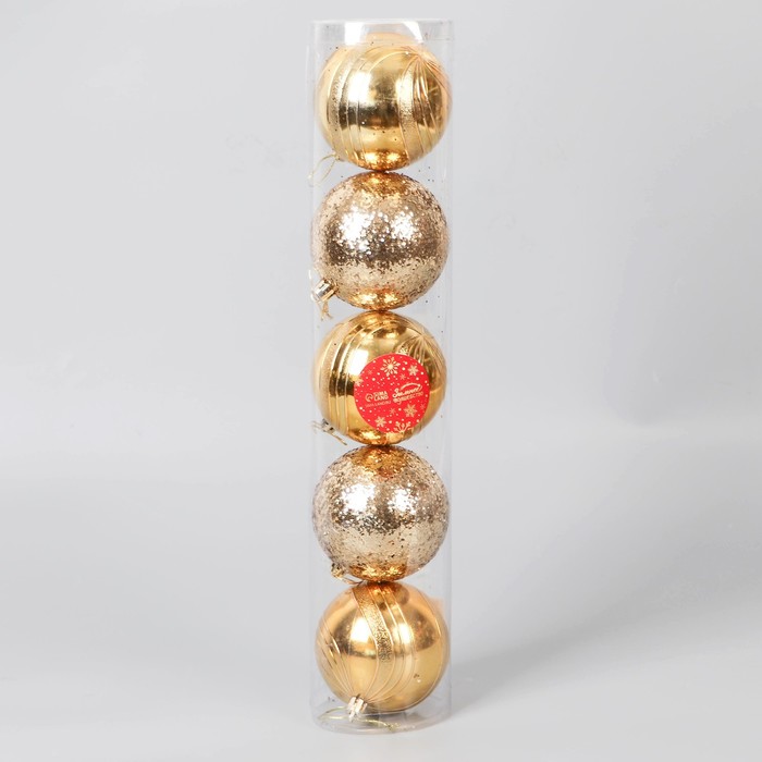 Ёлочные игрушки «Бахор», блеск, пластиковые, набор 5 шт., d=8 см, золотистый — Характеристики