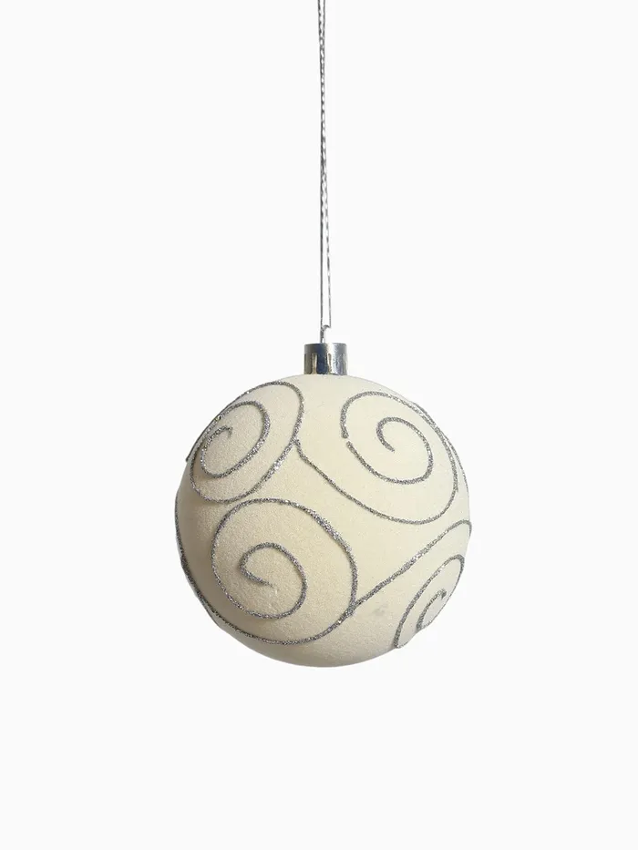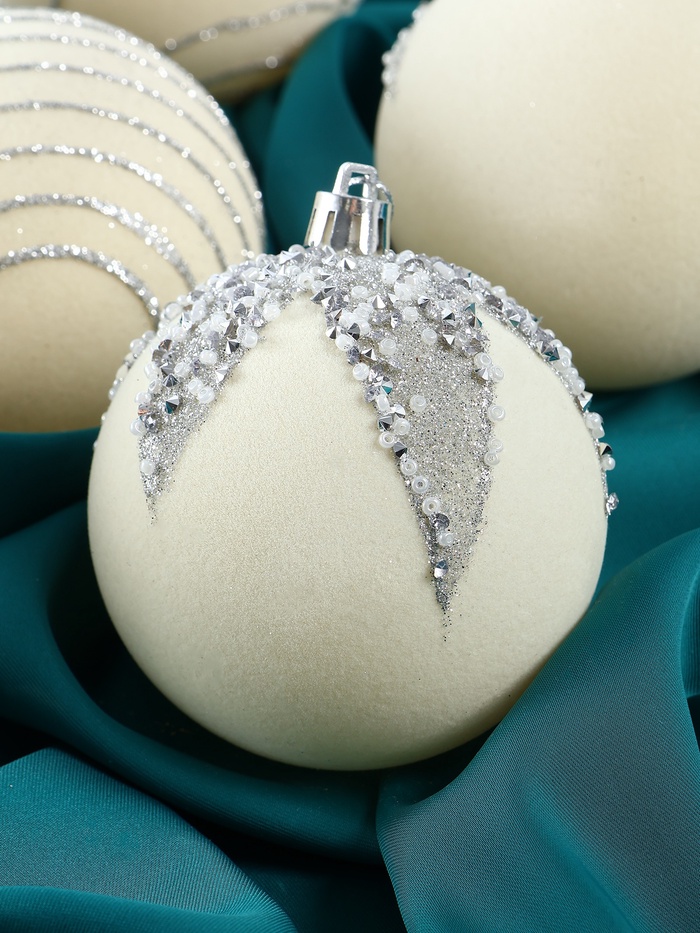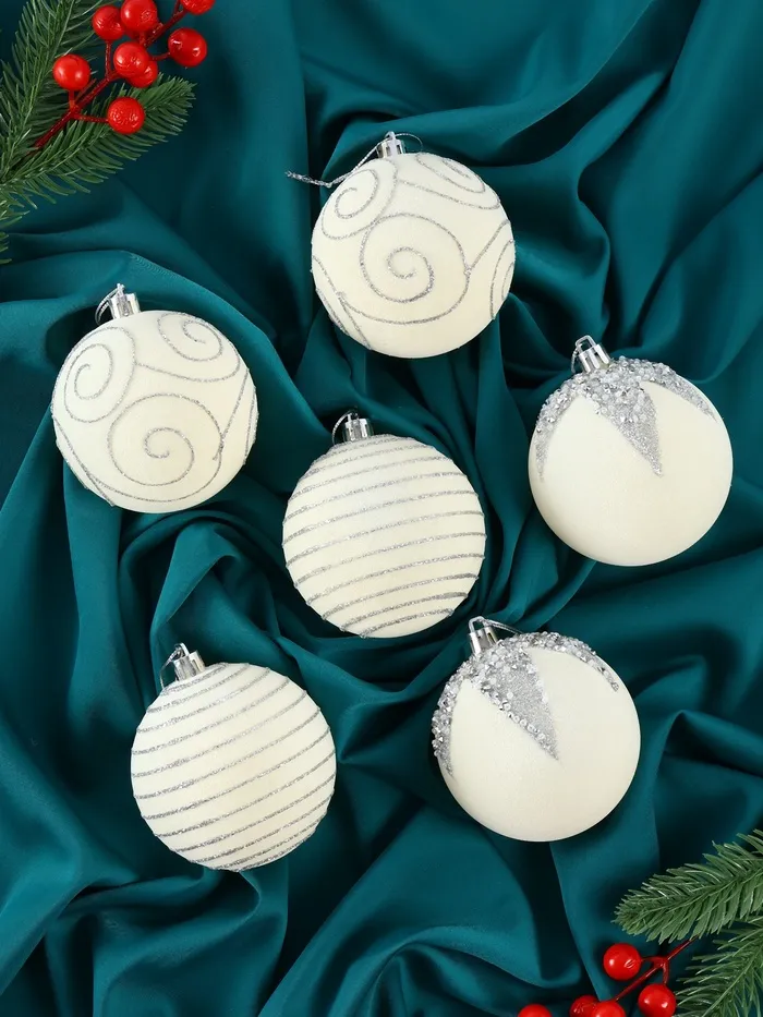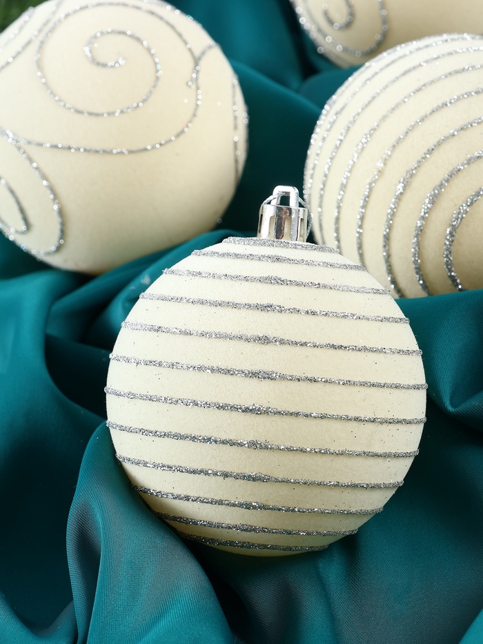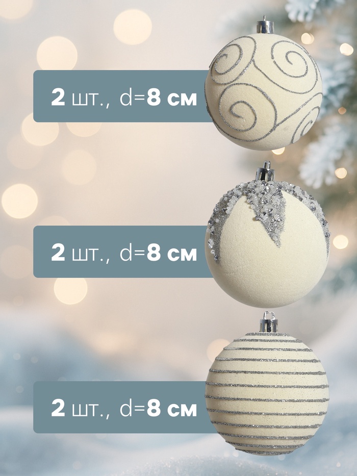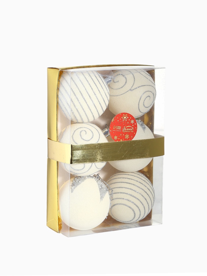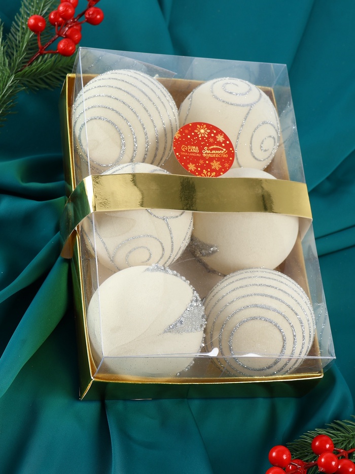 Ёлочные игрушки «Бархат. Фестиваль», шары новогодние, d=8 см, 6 шт., завитки, белый — Характеристики