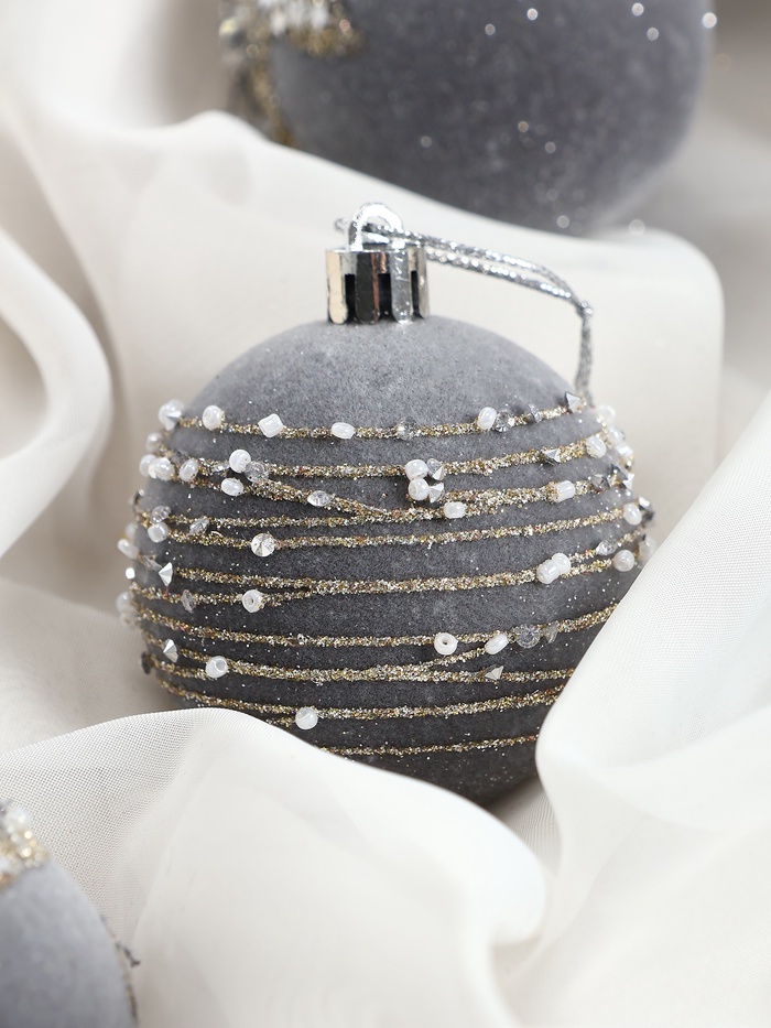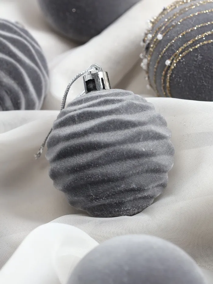 Эти шары привносят в оформление ёлки утончённость и стиль. Их бархатистый узор напоминает о маскарадных вечерах, добавляя нотки загадочности и торжественности в новогодний дизайн.