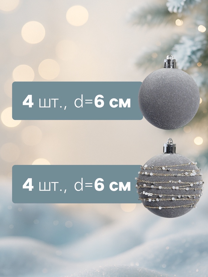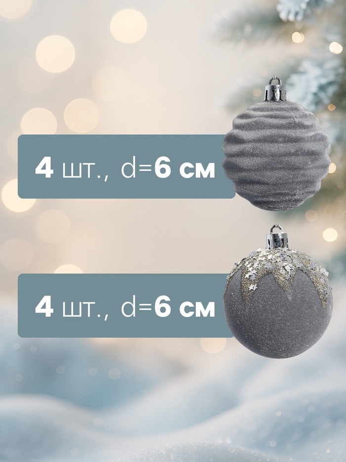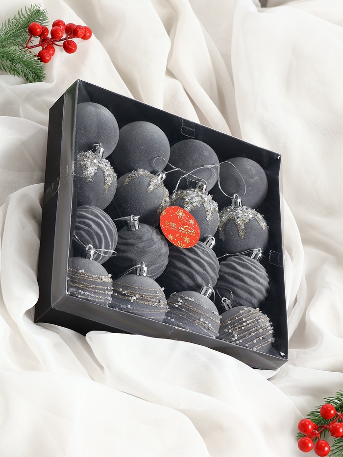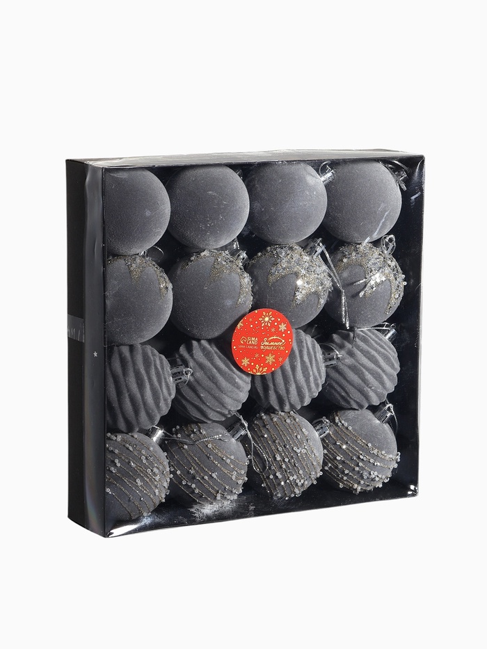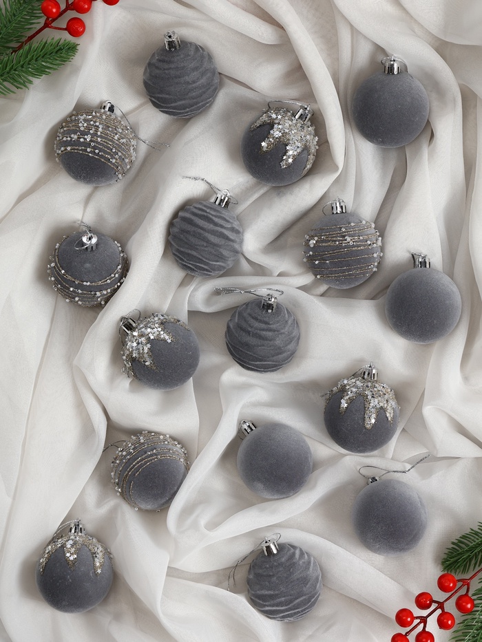 Ёлочные игрушки «Бархат. Маскарад», шары новогодние, d=6 см, 16 шт., серый — Характеристики