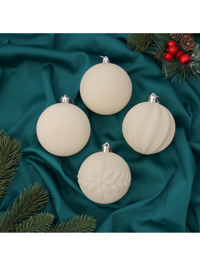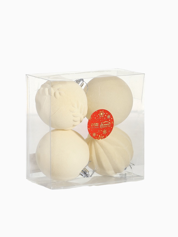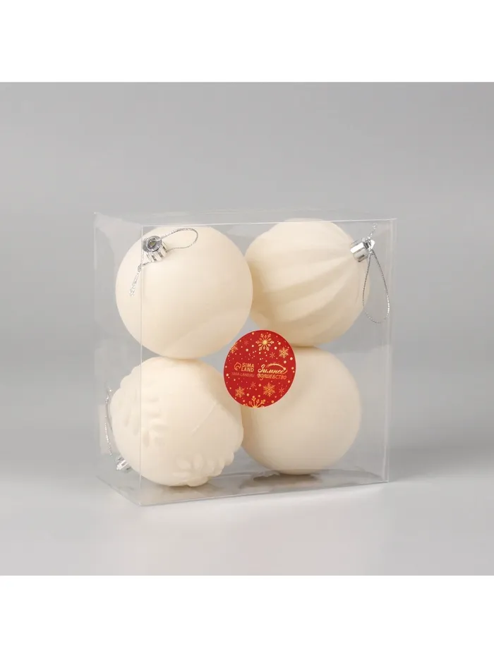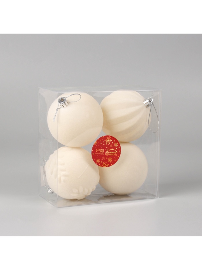 Ёлочные игрушки «Бархатный зной», шары новогодние, d=8 см, 4 шт., белый — Характеристики