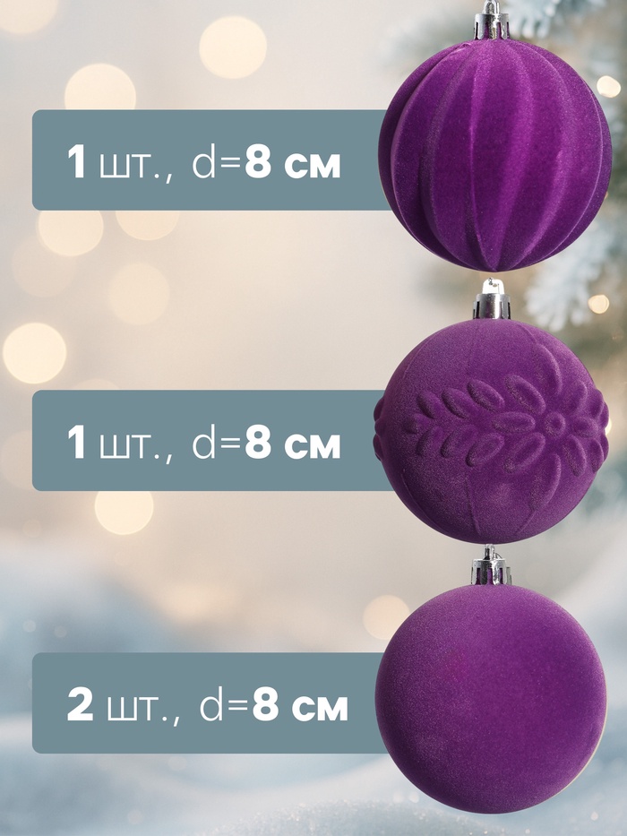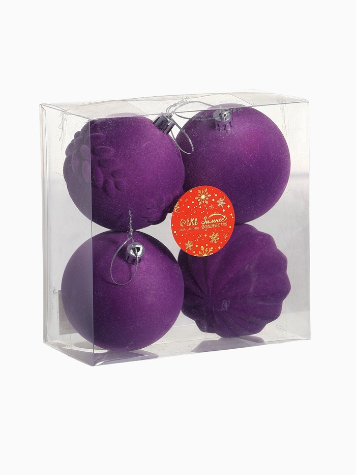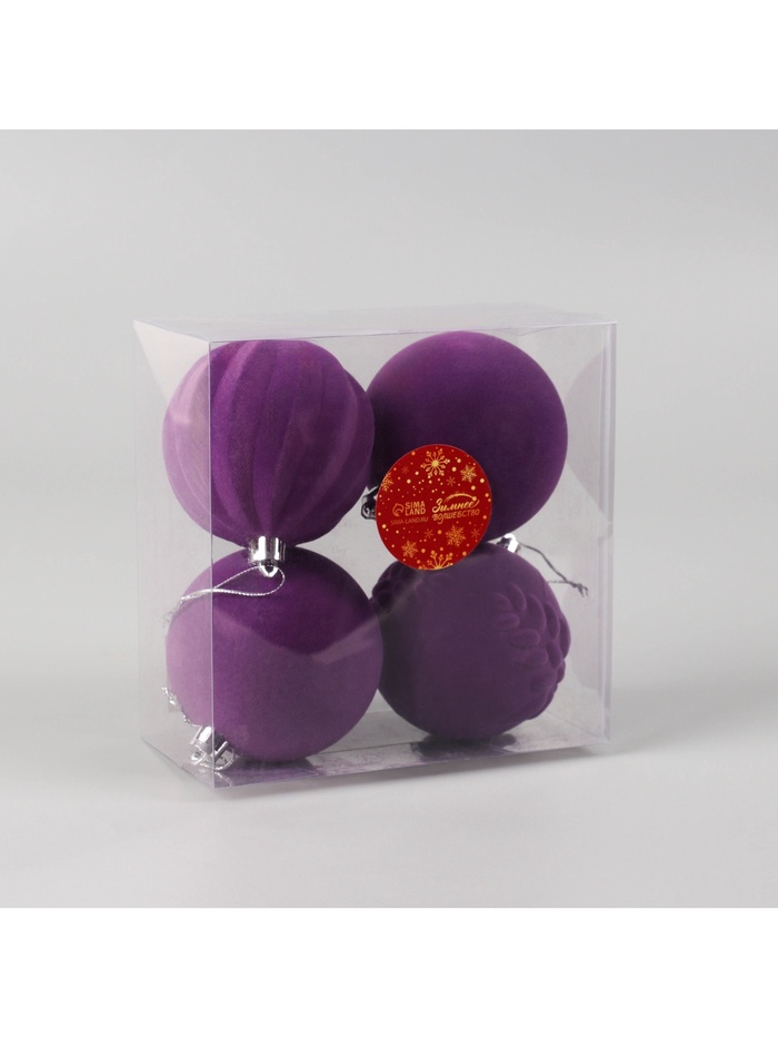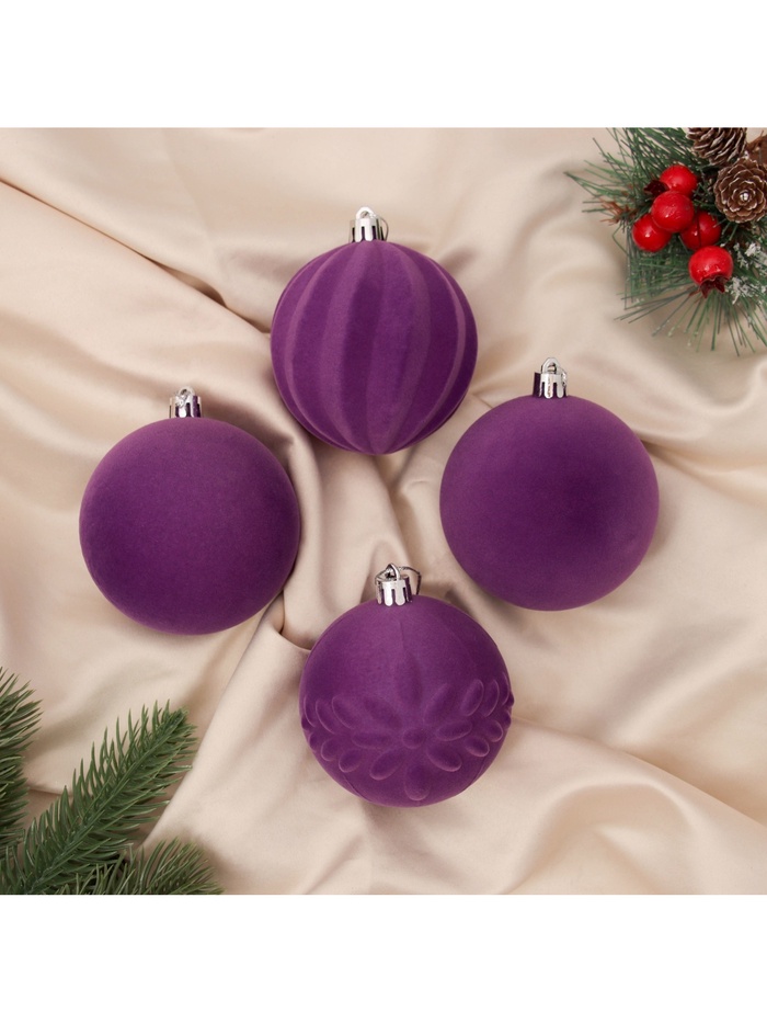 Ёлочные игрушки «Бархатный зной», шары новогодние, d=8 см, 4 шт., фиолетовый — Характеристики