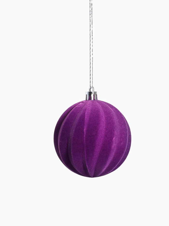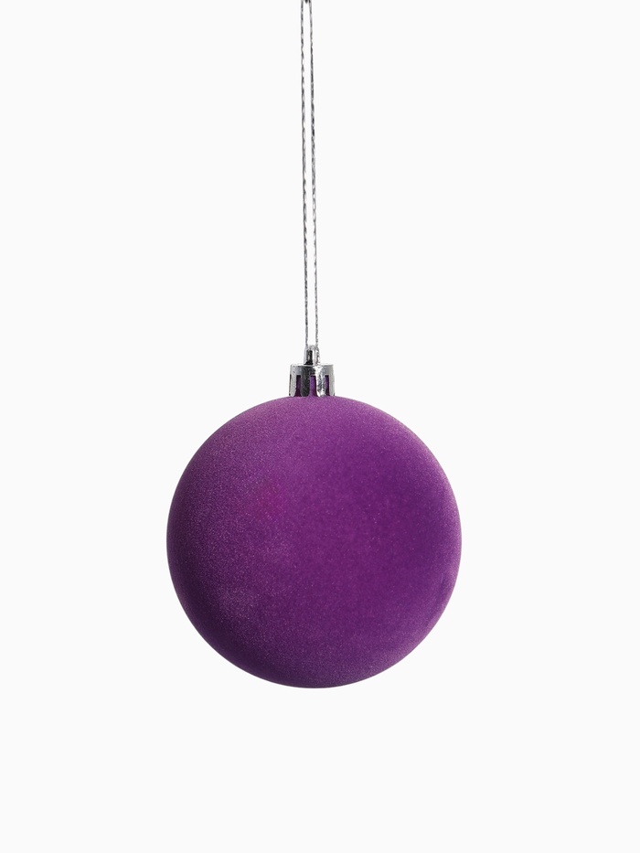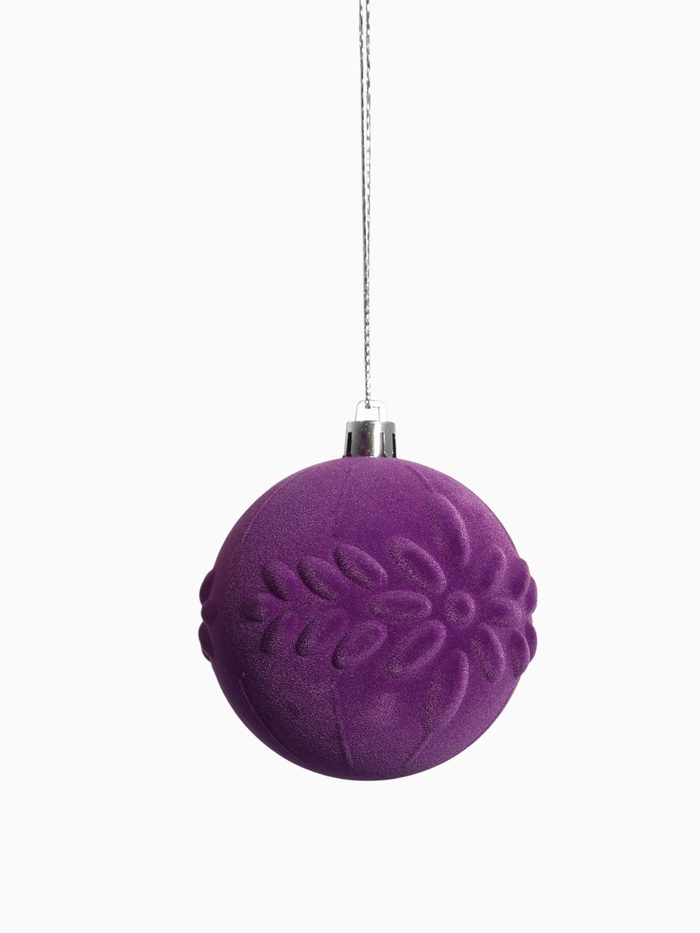 Набор из четырёх фиолетовых ёлочных шаров диаметром 8 см в стиле шебби-шик. Однотонные игрушки с нежным рисунком создают изящное и спокойное настроение для новогоднего декора.